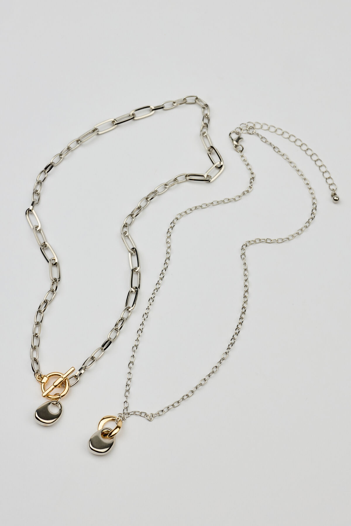 Set of 2 Mini Hammered Oval Necklaces Pink women – She’s wearing avant-garde jewelry and making everybody feel confused yet drawn to her. Features Two chain link necklaces Adjustable lobster clasp and toggle fastening Hammered sculptural pendants at drop Metal costume jewelry All jewelry is lead, nickel, and cadmium free Imported