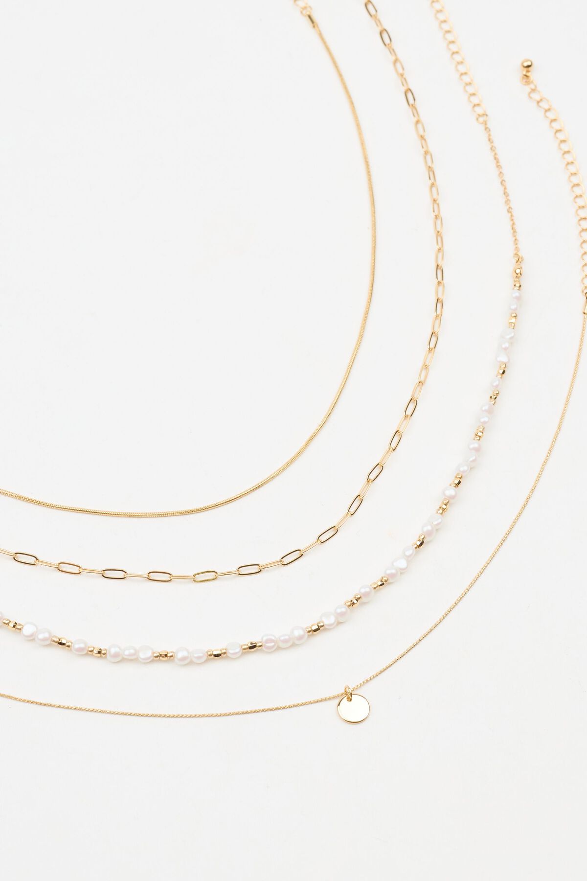 Set of 4 Pearl & Mini Medallion Necklaces